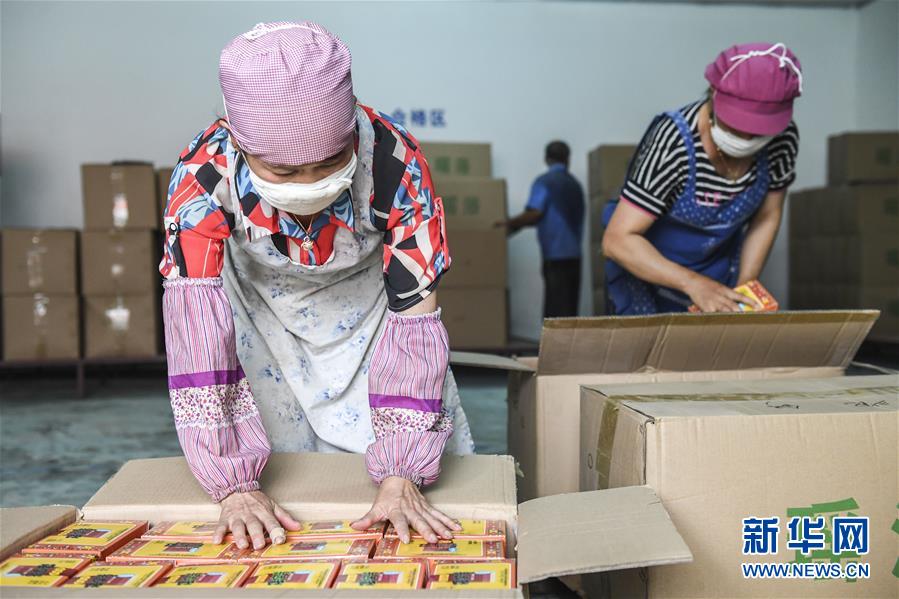 工人在广西金秀县一家瑶药加工厂里打包瑶药产品(7月10日摄)。新华社记者 曹祎铭 摄