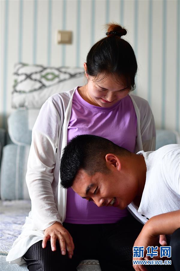 8月20日,在河南省三门峡市卢氏县河洛嘉园小区,王景峰在倾听宝宝的胎动。 新华社记者冯大鹏摄