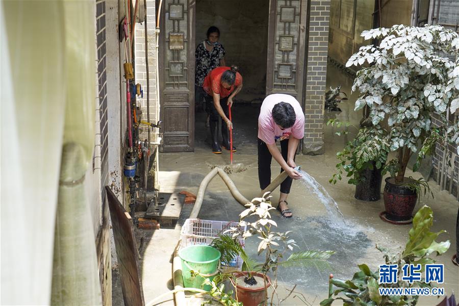 8月21日,在重庆磁器口古镇,居民在清理地面。 在洪峰顺利通过重庆中心城区后,长江、嘉陵江水位持续回落。重庆磁器口千年古镇积极开展灾后恢复工作。当地组织环卫工人、城管队员及志愿者与受灾商户、居民一起开展清淤、消杀、房屋安全检查及复工复产相关工作。 新华社记者 刘潺 摄