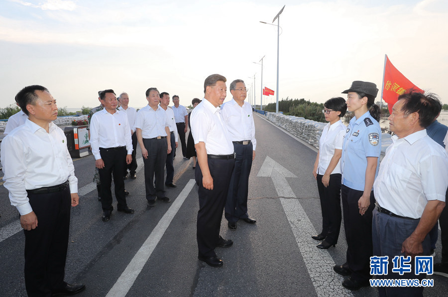 8月18日至21日,中共中央总书记、国家主席、中央军委主席习近平在安徽省考察。这是19日下午,习近平在合肥市肥东县十八联圩生态湿地蓄洪区巢湖大堤上,亲切看望慰问在防汛抗洪救灾斗争中牺牲同志的家属。 新华社记者 王晔 摄