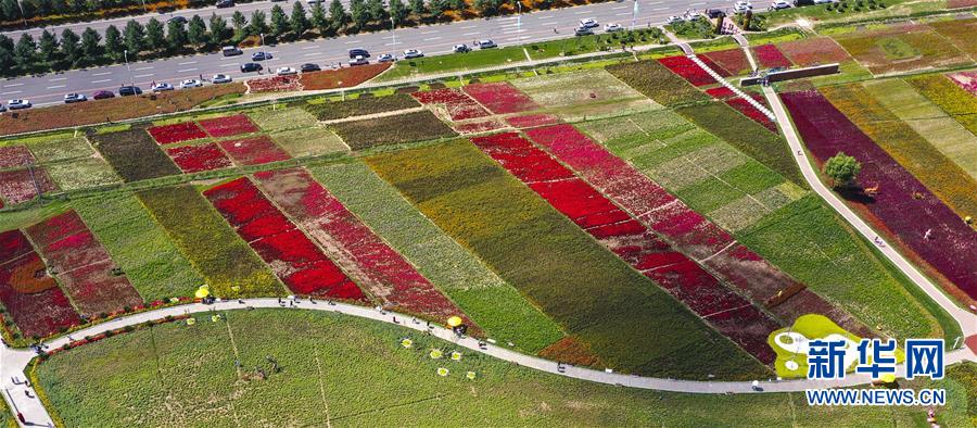 8月22日,游客在长春莲花山生态旅游度假区的花田里游玩(无人机照片)。 近年来,长春莲花山积极加快美丽乡村建设,因地制宜打造休闲观光农业,引导15个村3000余户村民加入景观花卉、生态农业等特色项目,带动农村集体经济发展和农民致富增收,实现“种一片花海、美一地乡村、富一方百姓”。 新华社记者 许畅 摄
