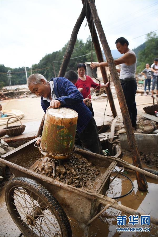 8月23日,洛南县麻坪镇峪口村一组的受灾群众在清理被洪水破坏的水井。新华社记者 陶明 摄