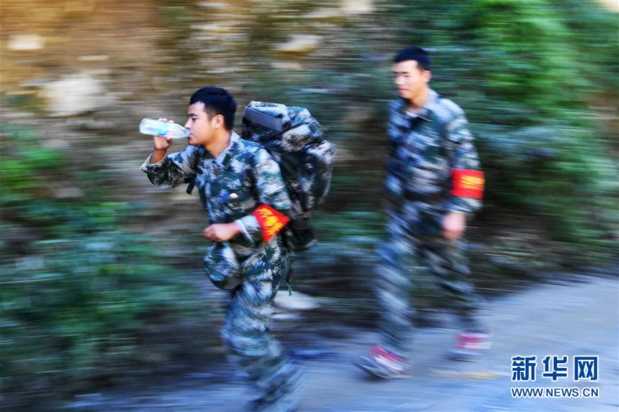 抢险救灾党员突击队队员王小军(左)和同伴向重灾区行进(8月24日摄)。 新华社记者 陈斌 摄