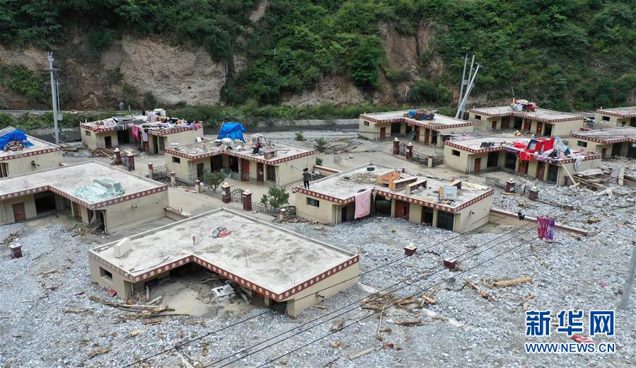 七夕前夜,为莫诺村架起“生命之桥” 这是受灾严重的莫诺村易地移民搬迁安置点(8月24日摄,无人机照片)。 新华社记者 陈斌 摄
