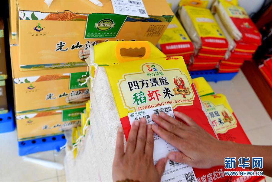8月25日,在光山县文殊乡东岳村电子商务示范站,工作人员准备发快递。 新华社记者 郝源 摄