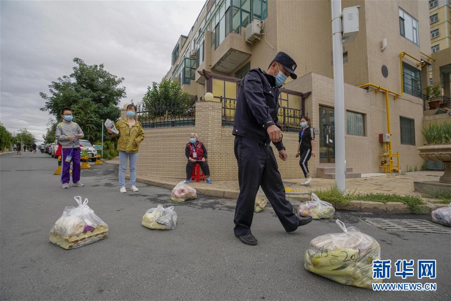 谷新波(前)在核对居民订购的生活品(8月26日摄)。新华社记者 赵戈 摄