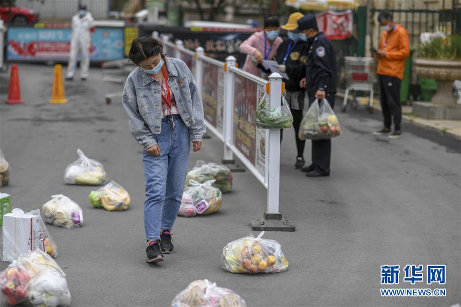 盛筱榆(前左)在仔细核对居民订购的生活品(8月26日摄)。 新华社记者 赵戈 摄