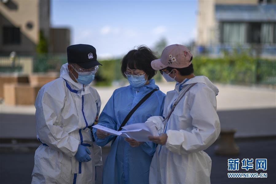 谷新波(左)向临时党小组成员布置工作(8月15日摄)。 新华社记者 赵戈 摄