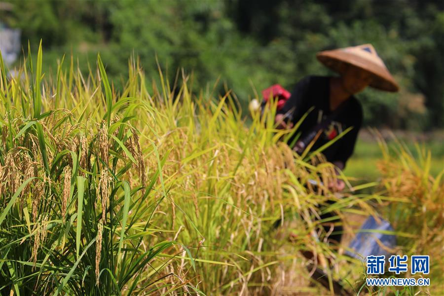 8月28日,吉首市乾州街道西门口村,村民在收获水稻。新华社发(刘振军 摄)
