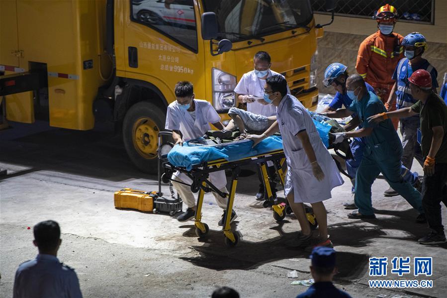 这是8月29日拍摄的事故救援现场。记者从山西省临汾市襄汾县“8·29”重大坍塌事故现场抢险救援组获悉,截至8月30日3时52分,临汾市襄汾县陶寺乡陈庄村聚仙饭店坍塌事故抢险救援工作结束,共搜救出57名被埋人员,其中29人遇难,7人重伤,21人轻伤。重伤者均得到有效救治,目前生命体征平稳,没有生命危险。抢险救援结束后,现场立即成立事故调查组,开展事故调查工作。新华社记者 杨晨光 摄