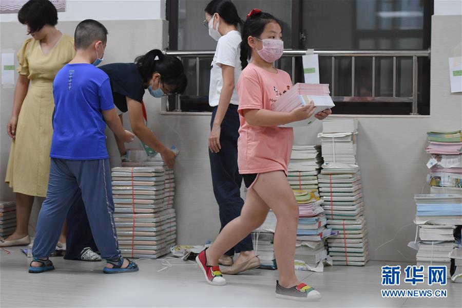 8月31日,在福州市乌山小学,学生在领取新教材。 新华社记者 宋为伟 摄