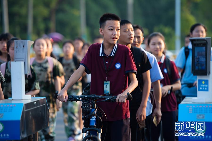 8月31日,长沙市浏阳市道吾中学的学生排队进入校园。 当日,在做好疫情防控工作的前提下,长沙市各区县(市)的普通中小学正式开学。 新华社记者 陈思汗 摄