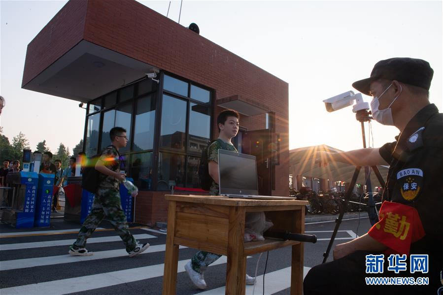 8月31日,长沙市浏阳市道吾中学的学生进校门时通过红外体温测量仪。 当日,在做好疫情防控工作的前提下,长沙市各区县(市)的普通中小学正式开学。 新华社记者 陈思汗 摄