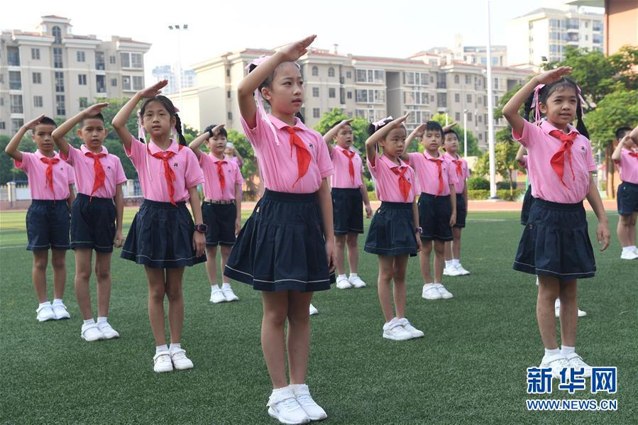 8月31日,南宁市玉兰路小学学生在开学典礼上。 当日,广西南宁市中小学正式开学。孩子们走进校园,开始新学期学习生活。 新华社记者 周华 摄