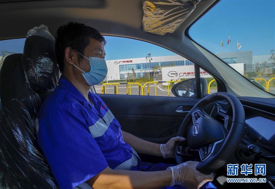 8月31日,在广汽乘用车新疆分公司,广汽传祺轿运车承运商工作人员将汽车开到轿运车上。新华社记者 赵戈 摄