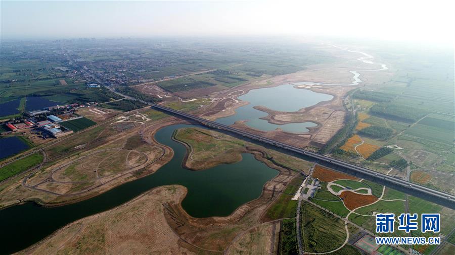 这是9月1日拍摄的石家庄市滹沱河生态修复二期工程藁城段(无人机照片)。日前,河北省石家庄市滹沱河生态修复二期工程完工,目前正在进行绿化养护和细节整理。滹沱河生态修复二期工程西起石家庄藁城城区东,东至深泽与衡水安平县界,工程主要对河槽进行疏浚和岸坡防护,打造溪流区和生态湖区,在调节气候、保持水土、护河防洪等方面具有重要作用。新华社记者 骆学峰 摄