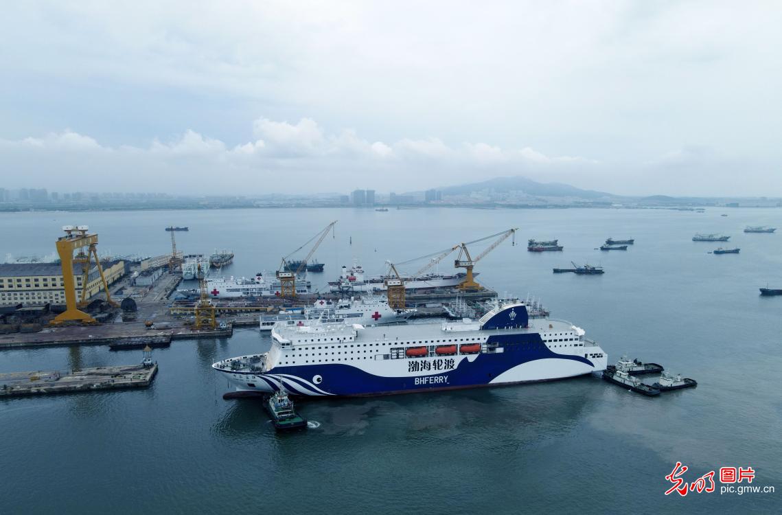 2020年9月1日,山东省荣成市石岛管理区一造船公司建造的大型豪华客滚船"中华富强号",经过为期三天的试航,成功归来,船只各项指标正常,投入运营后将往返威海-大连航线。(杨志礼摄/光明图片)