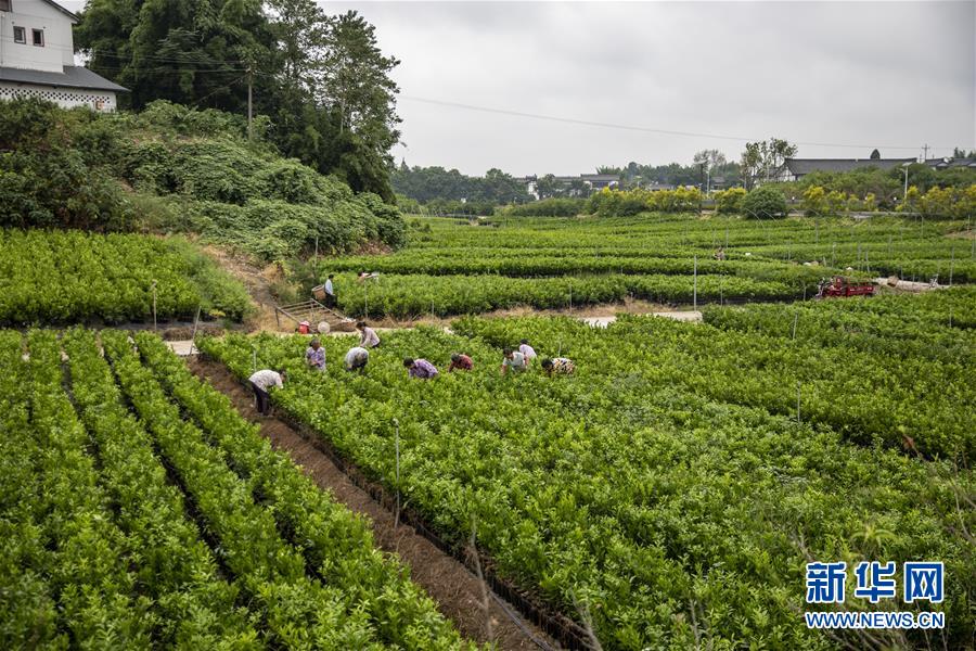 9月2日,在重庆市铜梁区巴川街道玉皇村,村民在西郊绿道旁的重庆成王果业有限公司苗圃基地劳作。 近年来,重庆市铜梁区通过改善基础设施、提升人居环境、完善产业业态等方式促进乡村发展,打通一条集产业发展、观光旅游、便民惠民的西郊绿道,串联起沿线5个街镇,让30余个产业基地连线发展,助推农民增收和乡村振兴。 新华社记者 黄伟 摄