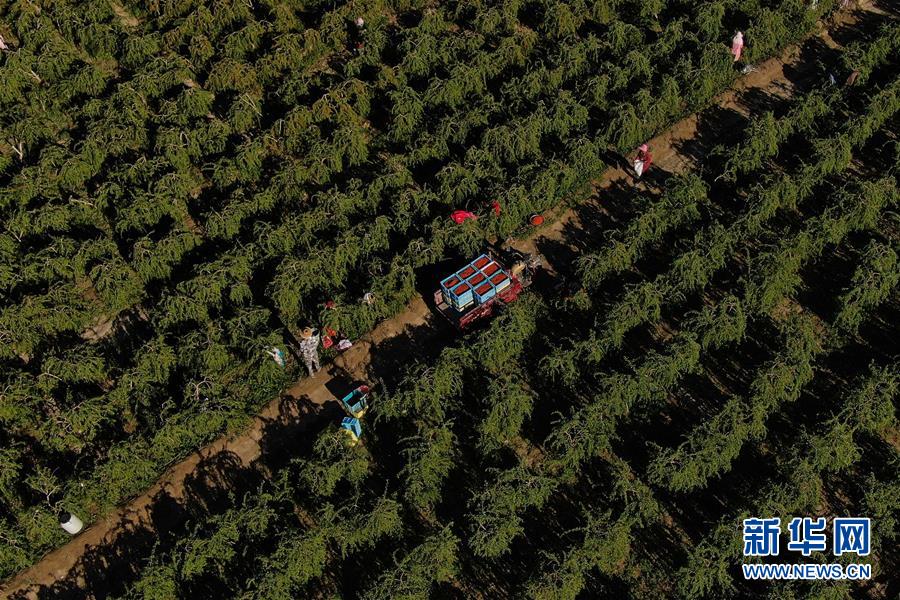 9月2日,在德令哈市尕海镇泉水村,车辆在运送枸杞(无人机照片)。 初秋时节,青海省海西蒙古族藏族自治州德令哈市万亩枸杞成熟,进入采摘季。近年来,当地持续发展和培育枸杞“红色产业链”,提升当地枸杞的品牌效应,带动农民增收致富。 德令哈市位于青海柴达木盆地,独具特色的高原大陆性气候为发展枸杞产业提供了得天独厚的条件,当地枸杞具有甜度高、颗粒大等特点。 新华社记者 张龙 摄