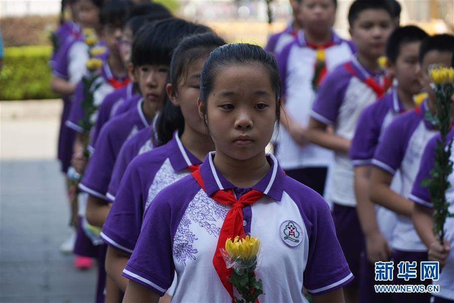 9月3日,小学生们手捧鲜花参加纪念活动。 当日是中国人民抗日战争暨世界反法西斯战争胜利75周年纪念日,江西省南昌市东湖区各界群众与抗战老兵代表一起在江西省革命烈士纪念堂参加纪念活动。 新华社记者 周密 摄
