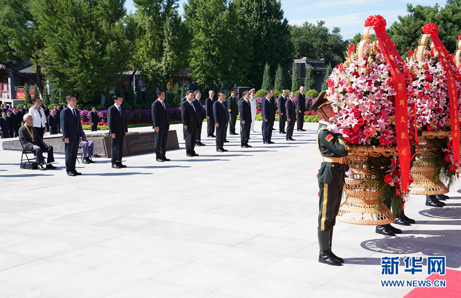 9月3日上午,习近平、李克强、栗战书、汪洋、王沪宁、赵乐际、韩正、王岐山等党和国家领导人来到中国人民抗日战争纪念馆,出席纪念中国人民抗日战争暨世界反法西斯战争胜利75周年向抗战烈士敬献花篮仪式。 新华社记者 王晔 摄