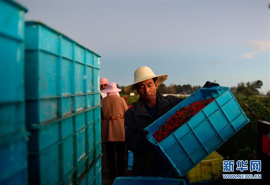 9月2日,在德令哈市尕海镇泉水村,李福文在搬运枸杞。新华社记者 张龙 摄