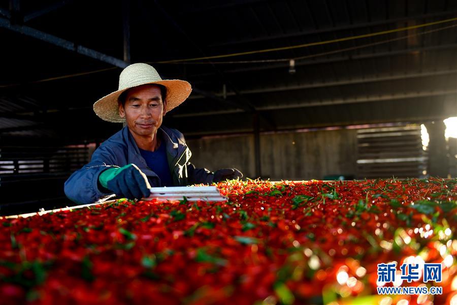 9月2日,在德令哈市尕海镇泉水村,李福文在晾晒枸杞。新华社记者 张龙 摄