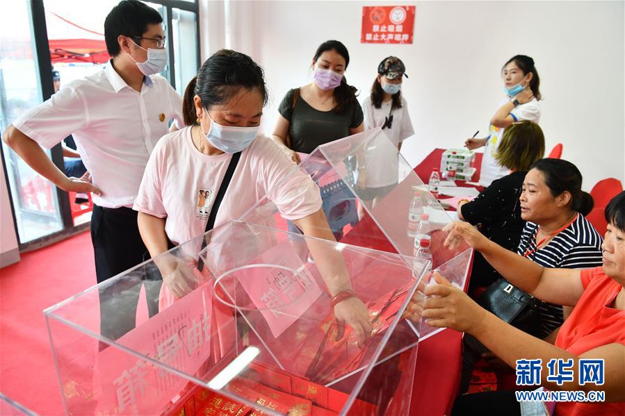 9月5日,包河区同安街道甘棠苑小区回迁居民在进行抽签选房。 当日,安徽省合肥市包河区同安街道甘棠苑小区373套回迁安置房公开选号分配,160多户居民将在配套齐全的小区里迎来新生活。 新华社记者 刘军喜 摄