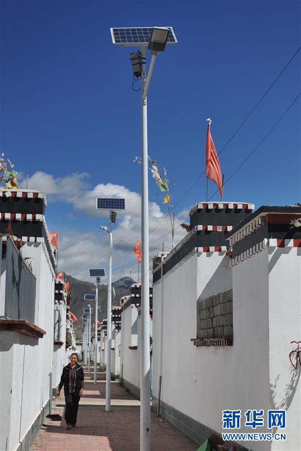 郭加新村街道上安装的太阳能节能灯(9月4日摄)。 新华社发(索朗罗布 摄)