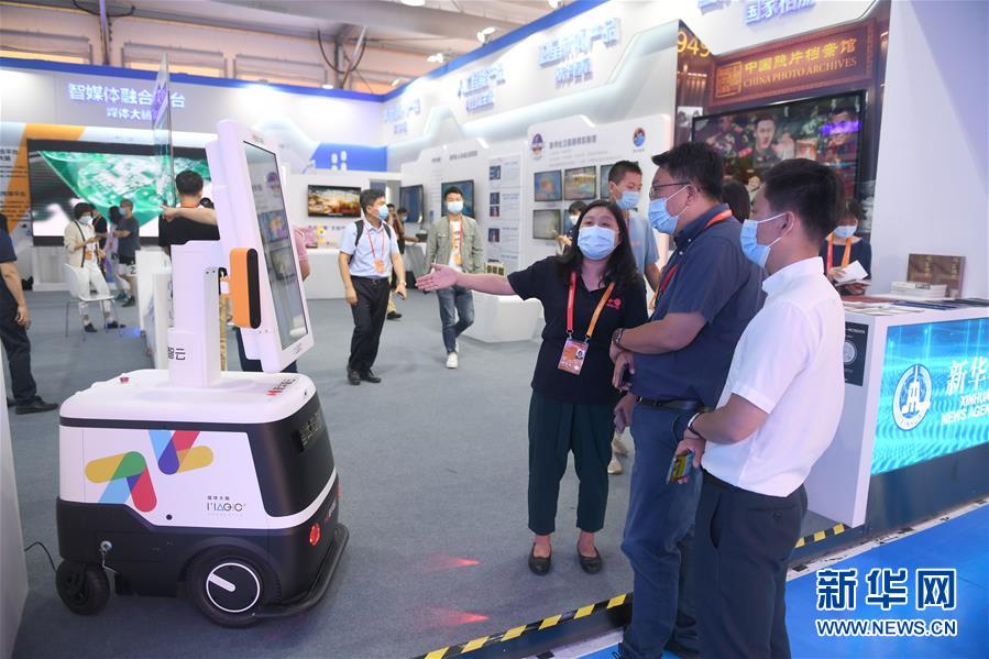 9月5日,在服贸会媒体融合展区,工作人员向观众介绍新华社的vlog智能生成系统。 新华社记者 鲁鹏 摄