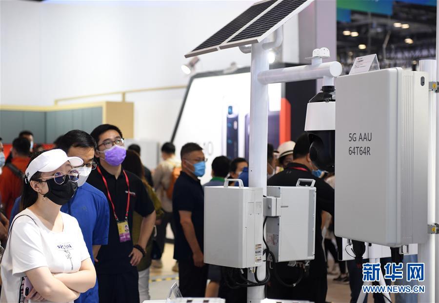 9月6日,参观者在服贸会上参观5G宏站射频单元。 新华社记者 张晨霖 摄
