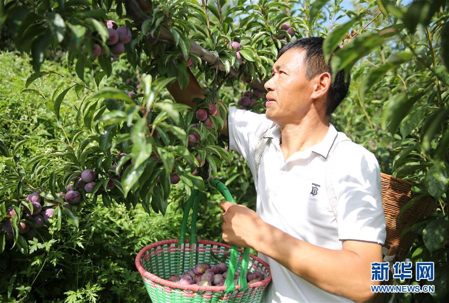 9月6日,理县桃坪镇佳山村村民在采摘青红脆李。