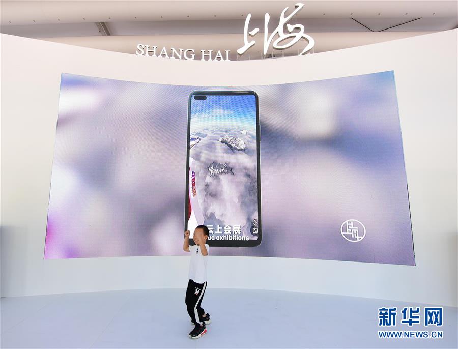 9月7日,一名男孩在服贸会国别和省区市专区上海展台留影。 2020年中国国际服务贸易交易会9月4日至9日在北京举行。 新华社记者 尹栋逊 摄