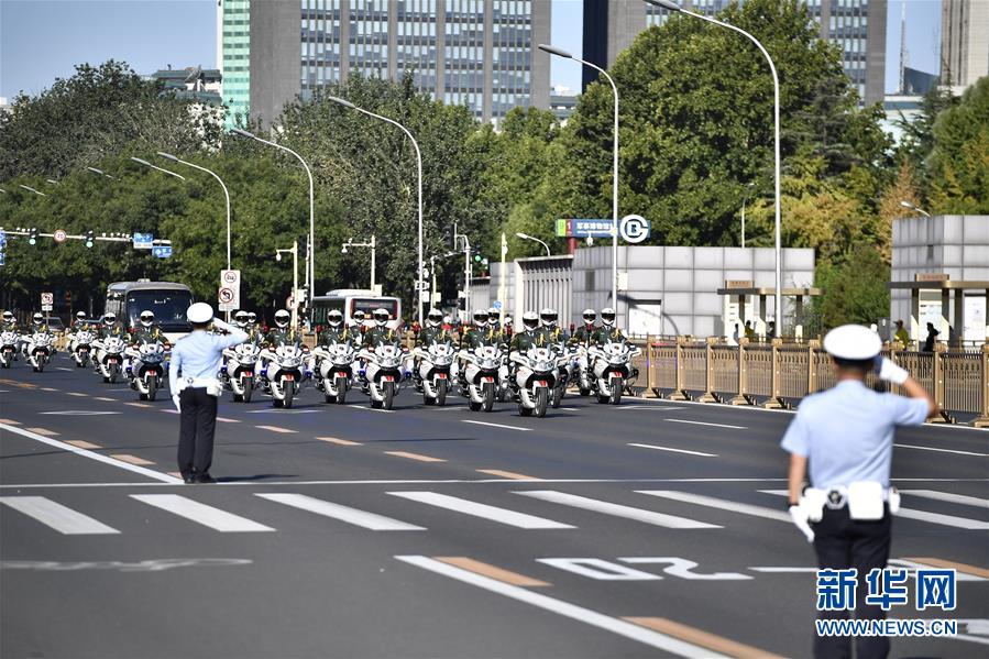9月8日上午,国家勋章和国家荣誉称号获得者乘坐礼宾车从住地出发,在国宾护卫队的护卫下,前往人民大会堂。 全国抗击新冠肺炎疫情表彰大会将于9月8日上午10时在北京人民大会堂隆重举行。 新华社记者 陈益宸 摄