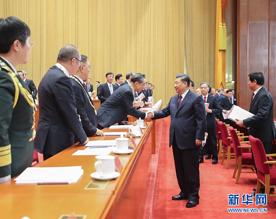 9月8日,全国抗击新冠肺炎疫情表彰大会在北京人民大会堂隆重举行。中共中央总书记、国家主席、中央军委主席习近平在大会上发表重要讲话。这是会后,习近平同国家勋章和国家荣誉称号获得者亲切交流。 新华社记者 鞠鹏 摄