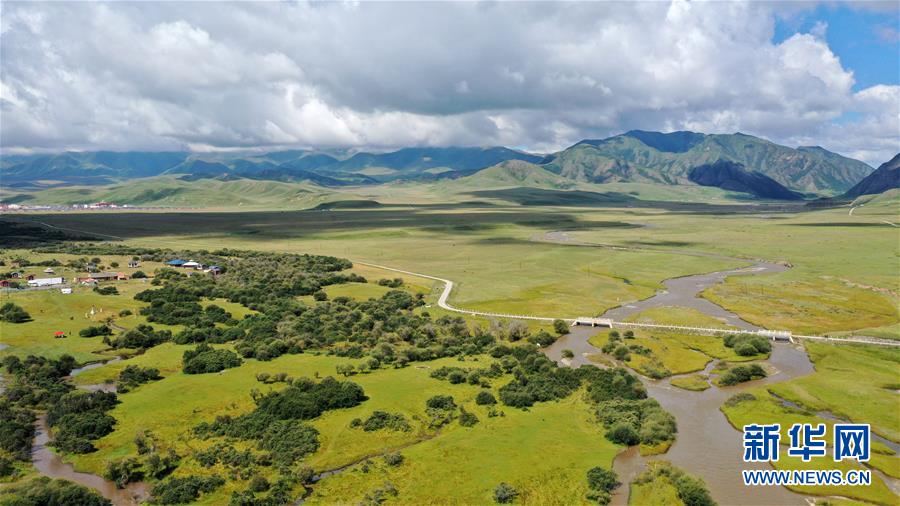 这是9月1日拍摄的甘南藏族自治州夏河县桑科湿地景观(无人机照片)。新华社记者 陈斌 摄