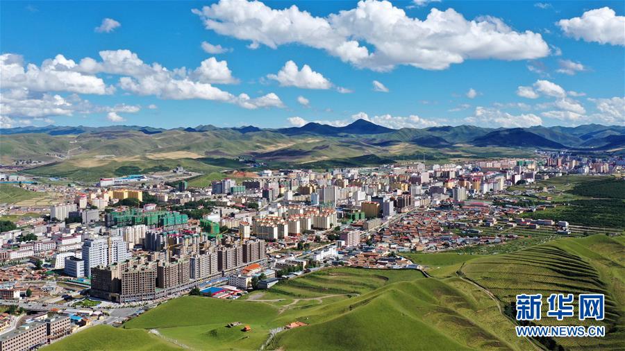 这是8月31日拍摄的甘南藏族自治州首府合作市(无人机照片)。新华社记者 陈斌 摄