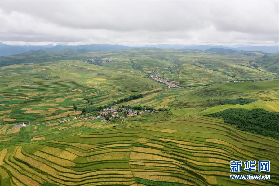 这是8月12日拍摄的甘肃省甘南藏族自治州卓尼县阿子滩镇阿子滩村(无人机照片)。新华社记者 邢广利 摄