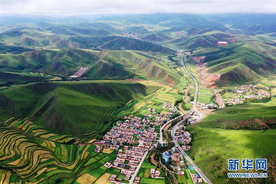 这是8月12日拍摄的甘肃省甘南藏族自治州卓尼县阿子滩镇阿子滩村(无人机照片)。新华社记者 邢广利 摄