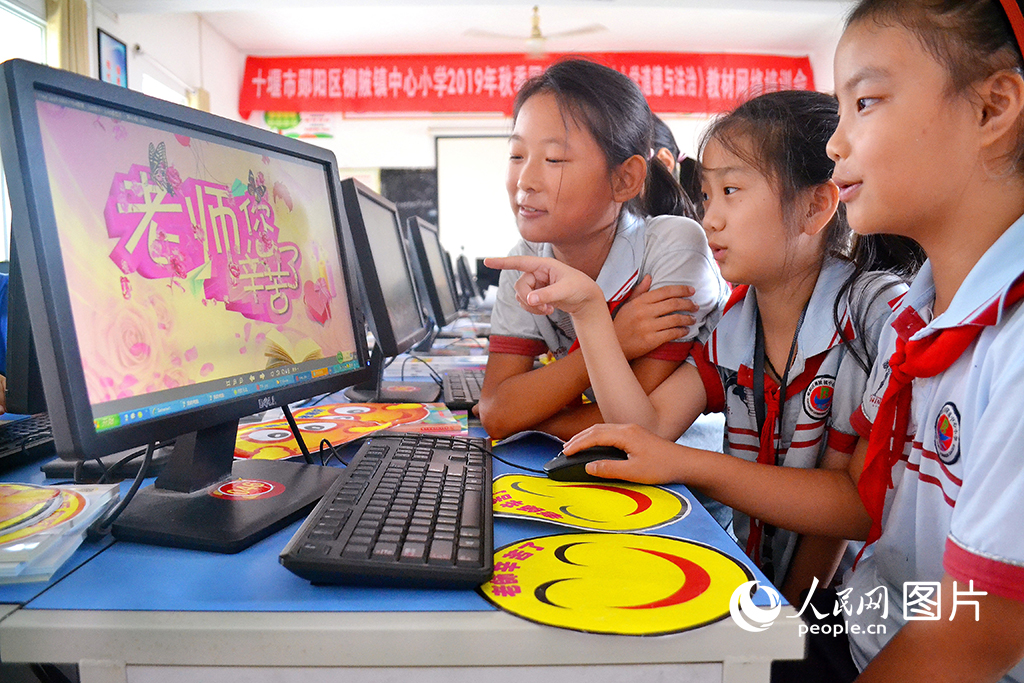 在三十六个教师节来临之际,湖北省十堰市郧阳区柳陂镇中心小学学生利用信息课时间制作了一张张精美漂亮的电子贺卡,作为教师节礼物,通过微信、QQ等既节俭又环保的方式,向他们的老师表达节日的祝福与感恩之情。杨显有/摄