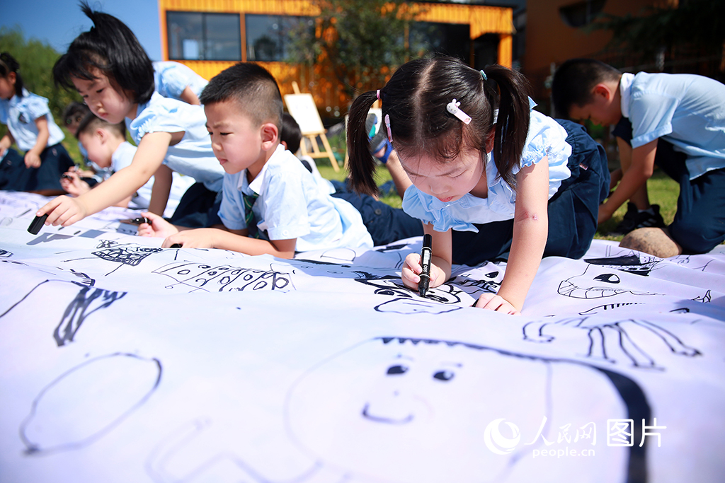 2020年9月8日,在第三十六个教师节即将到来之际,浙江省东阳市实验幼儿园举行了“老师,给您画幅画”活动。现场,10米长的画布上趴满了聚精会神绘画的小朋友。该园希望通过举办本次活动,让小朋友知道9月10日是教师节,用自己的方式画下老师最美的样子,以此营造一个尊师重教的教学氛围。 胡扬辉/摄