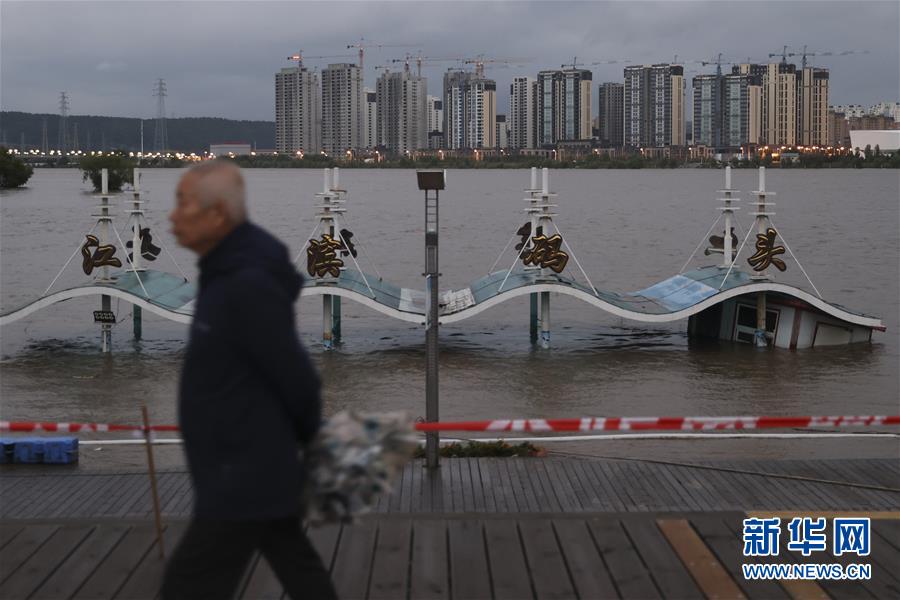 9月10日,市民在牡丹江市江滨公园附近的岸上散步。 新华社发(张涛摄)