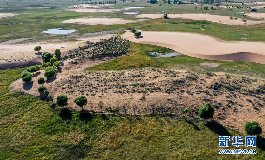 这是9月8日在内蒙古鄂尔多斯市乌审旗拍摄的治理后的毛乌素沙地(无人机照片)。 毛乌素沙地是我国四大沙地之一,总面积4.22万平方公里,位于陕西省榆林地区和内蒙古鄂尔多斯市之间。昔日的毛乌素沙地黄沙漫天,“沙进人退”,经过几代人的治理,如今的毛乌素沙地绿意盎然。 新华社记者 连振 摄
