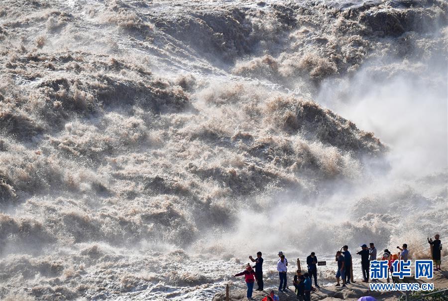 9月11日,游人在陕西宜川县黄河壶口瀑布景区参观拍照。新华社记者 邵瑞 摄