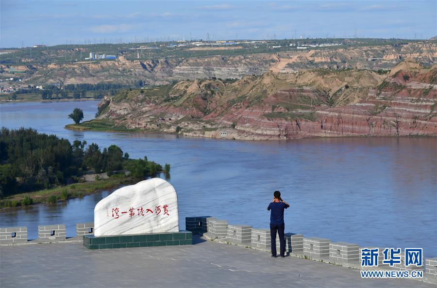 9月8日,游人在陕西府谷县黄河龙湾景区拍照。新华社记者 邵瑞 摄