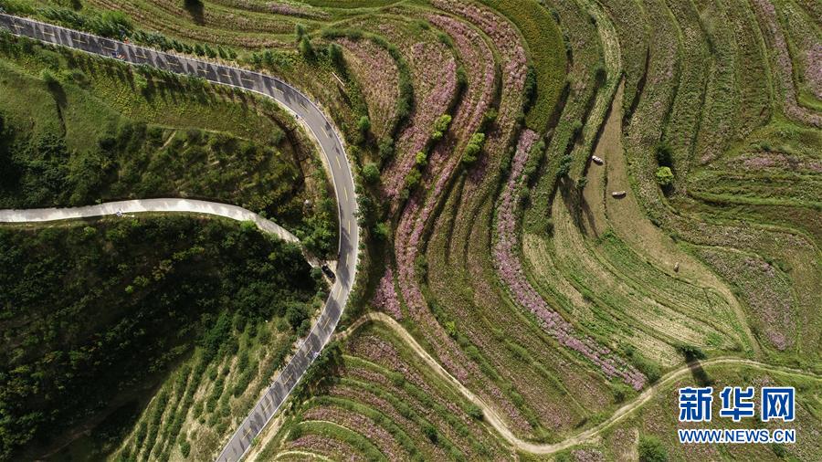 这是9月10日在宁夏固原市西吉县吉强镇龙王坝村拍摄的梯田(无人机照片)。新华社记者 王鹏 摄