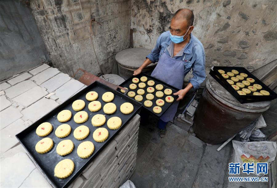 9月12日,石家庄市井陉县天长镇的“端盛长”传统手工月饼制作工坊的工作人员将月饼放入土炉内烘烤。 随着中秋佳节的临近,位于河北省石家庄市井陉县天长镇的“端盛长”传统手工月饼制作工坊开始忙碌起来,工作人员开足马力制作月饼。据了解,井陉县天长镇“端盛长”传统手工月饼制作工坊起源于清代,距今已有百余年历史。“端盛长”传统手工月饼以五仁和豆沙馅为主,从和面、做馅、擀皮一直到包制、印模、烘烤,每一道工序均为手工制作完成。 新华社发(梁子栋 摄)
