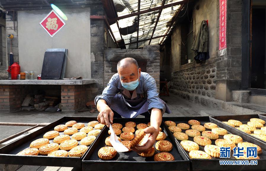 9月12日,石家庄市井陉县天长镇的“端盛长”传统手工月饼制作工坊的工作人员在检查烘烤好的月饼。 随着中秋佳节的临近,位于河北省石家庄市井陉县天长镇的“端盛长”传统手工月饼制作工坊开始忙碌起来,工作人员开足马力制作月饼。据了解,井陉县天长镇“端盛长”传统手工月饼制作工坊起源于清代,距今已有百余年历史。“端盛长”传统手工月饼以五仁和豆沙馅为主,从和面、做馅、擀皮一直到包制、印模、烘烤,每一道工序均为手工制作完成。 新华社发(梁子栋 摄)