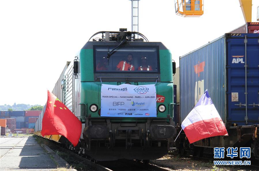 6月23日,满载防疫物资的中欧班列抵达法国巴黎东南郊的瓦朗通,此次班列是中法首趟抗疫物资专列。 今年年初以来,在多个区域因新冠疫情大范围断航的情况下,中欧班列交出亮眼成绩单。最新数据显示,今年8月,中欧班列累计开行1247列、发送货物11万标箱,同比分别增长62%、66%,在疫情防控、复工复产和稳定全球供应链等方面持续发挥作用。中欧班列成为后疫情时代中欧经贸往来日益密切的缩影。 新华社记者 徐永春 摄