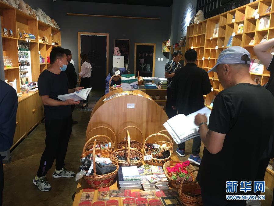 人们在黑龙江省大庆市林甸县北国温泉时光邮局参观选购(8月19日摄)。 新华社记者 刘赫垚 摄